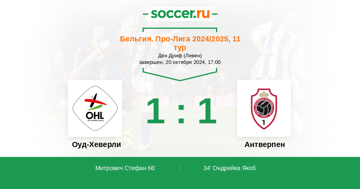 Гостевая команда в выездном матче с Оуд-Хеверли выглядит фаворитом, имеет заметно больше шансов на победу и хотя бы один гол, забитый Антверпеном после перерыва, зрители в этой игре наверняка смогут увидеть