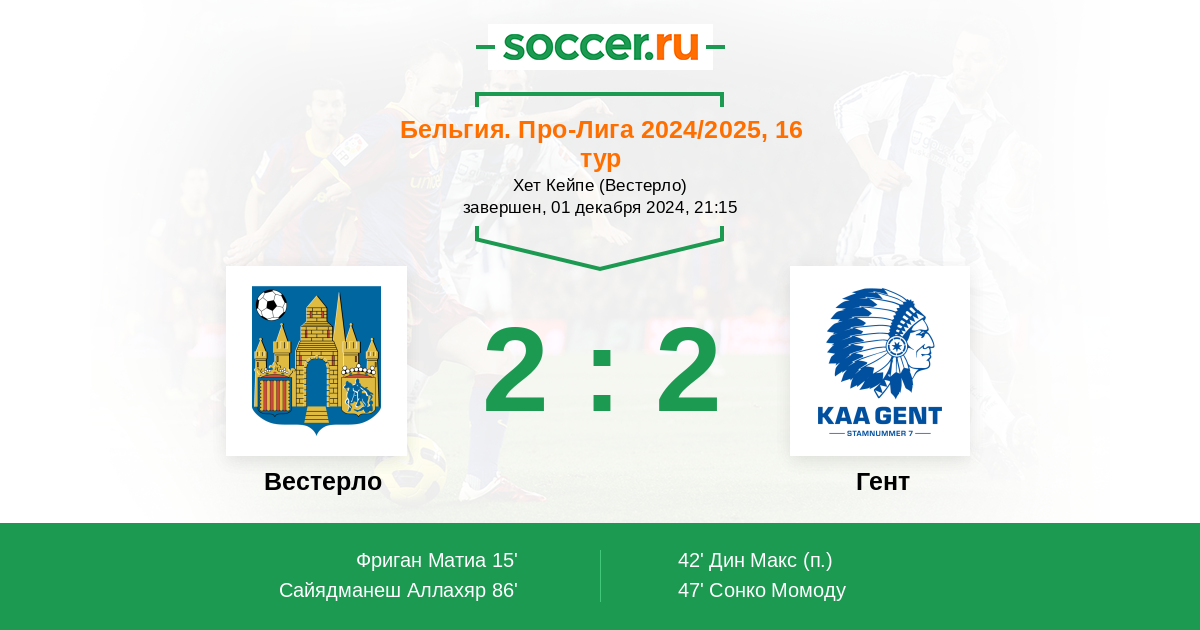 Протокол матча Вестерло против Гент