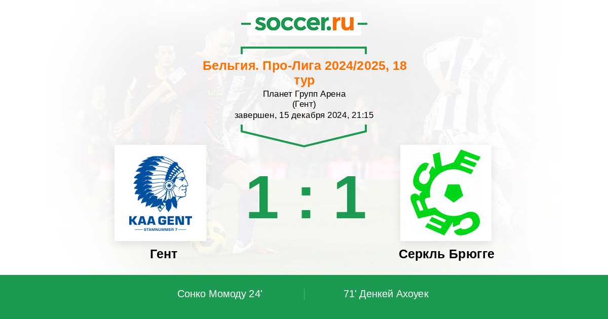 Протокол матча Гент против Серкль Брюгге