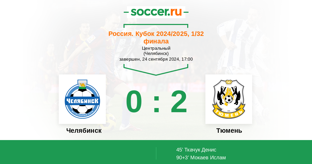 Протокол матча Челябинск против Тюмень