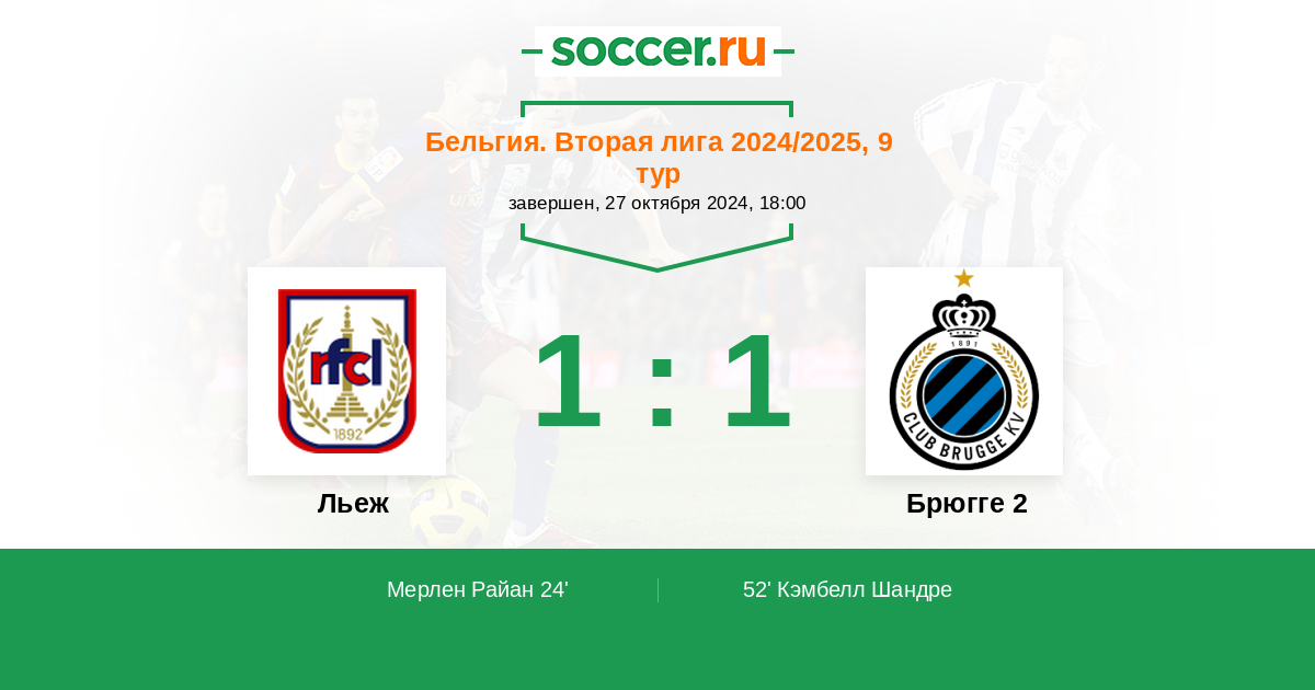 Протокол матча Льеж против Брюгге 2