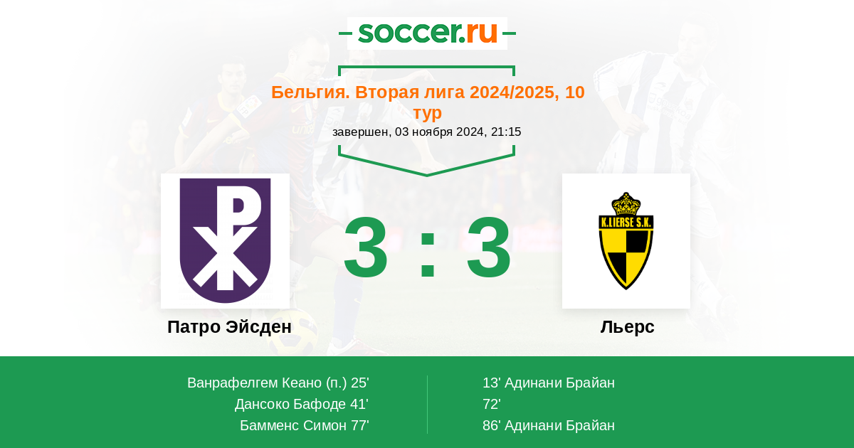 Протокол матча Патро Эйсден против Льерс