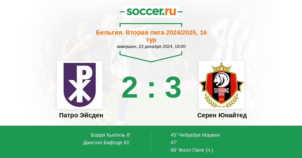 Протокол матча Патро Эйсден против Серен Юнайтед