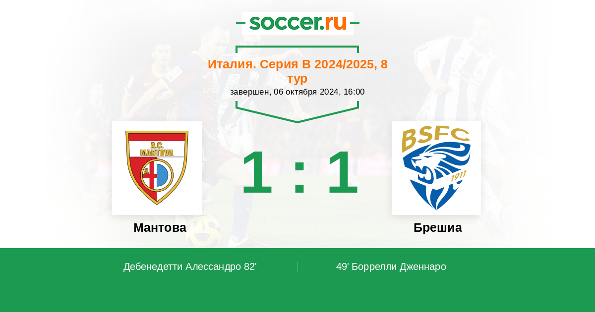 Протокол матча Мантова против Брешиа