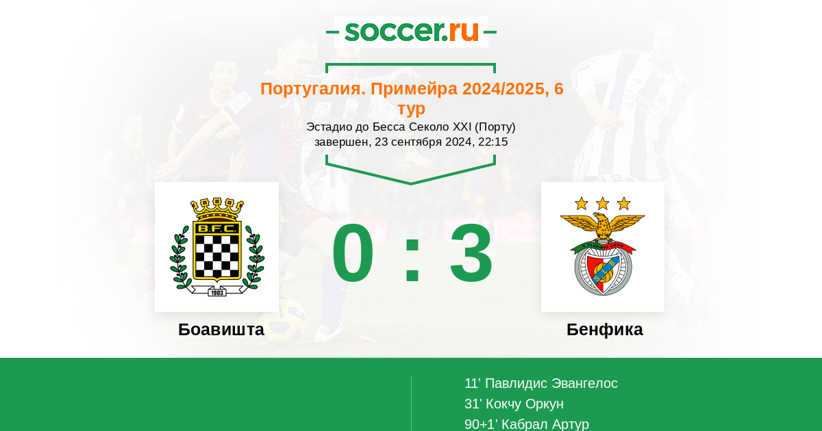 Боавишта - Бенфика ! Безусловный фаворит встречи Бенфика , но она играет в гостях и ещё не до конца нашла свою игру . Хозяева же дома могут " показать зубы ".