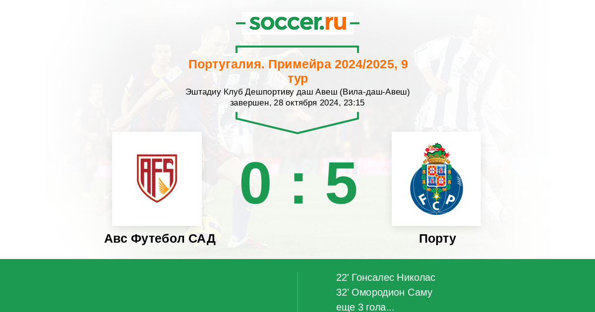 32' (0:2) Омородион Саму (9) (Фернандеш Мартим (52))