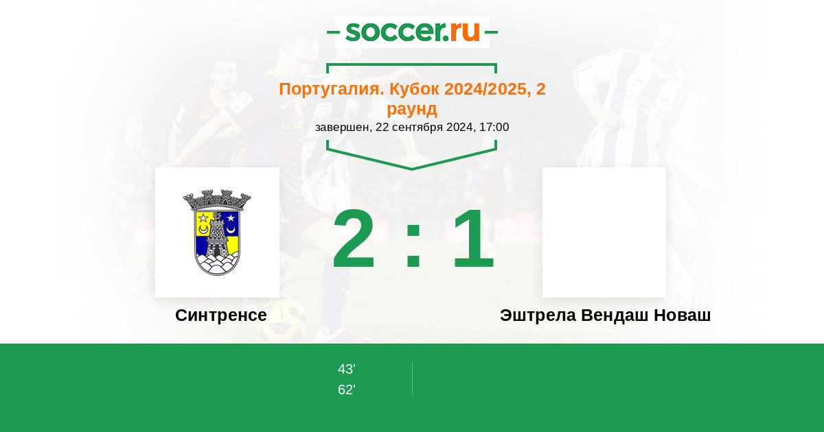 Протокол матча Синтренсе против Эштрела Вендаш Новаш