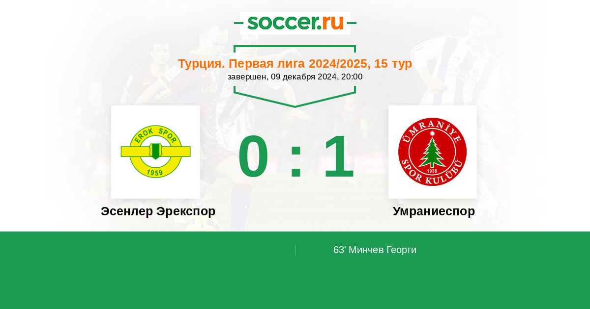 Протокол матча Эсенлер Эрекспор против Умраниеспор