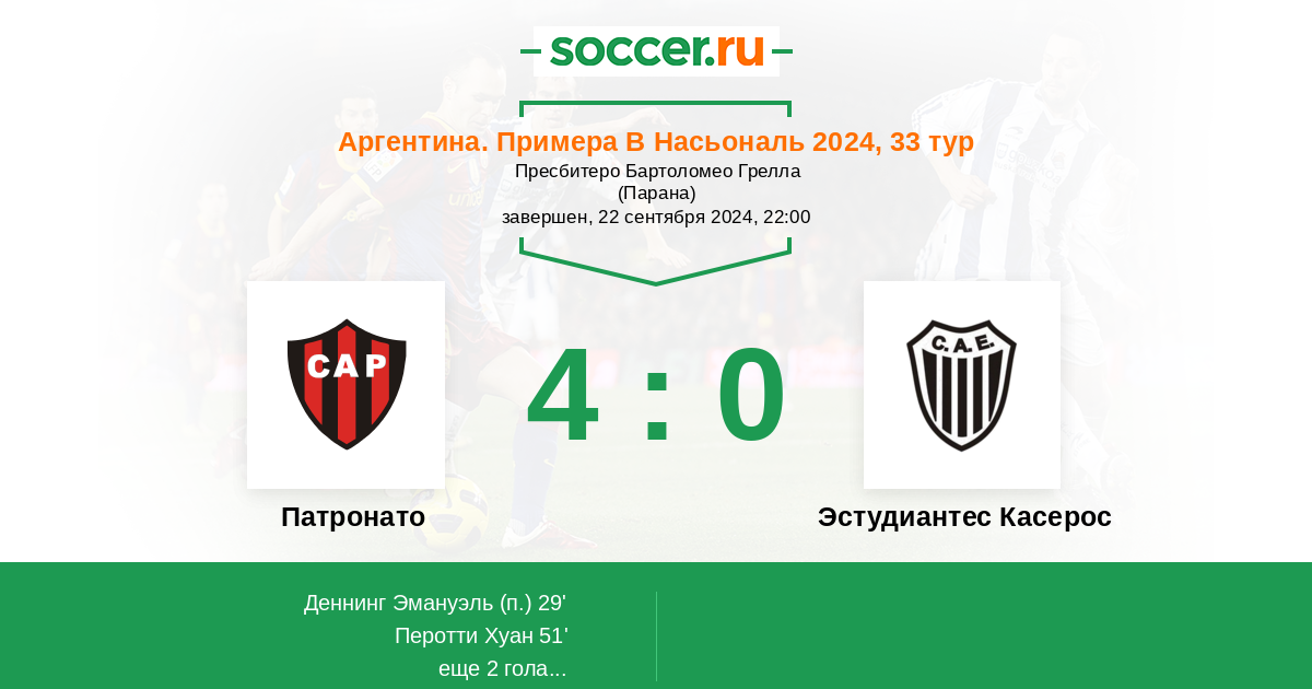 Протокол матча Патронато против Эстудиантес Касерос