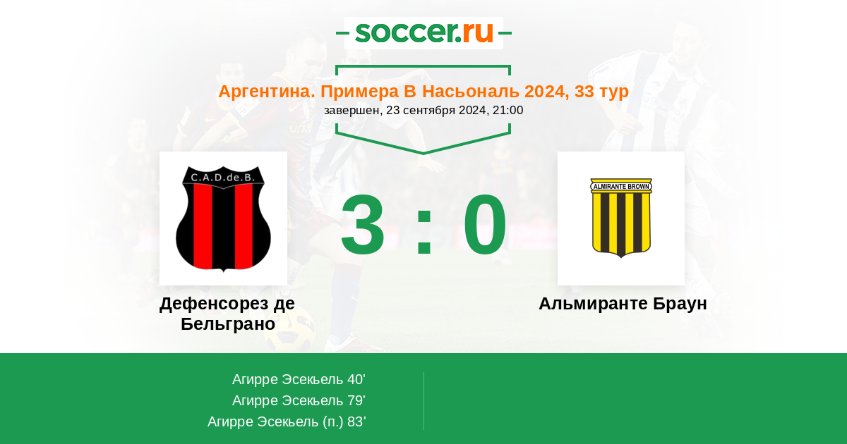 Протокол матча Дефенсорез де Бельграно против Альмиранте Браун