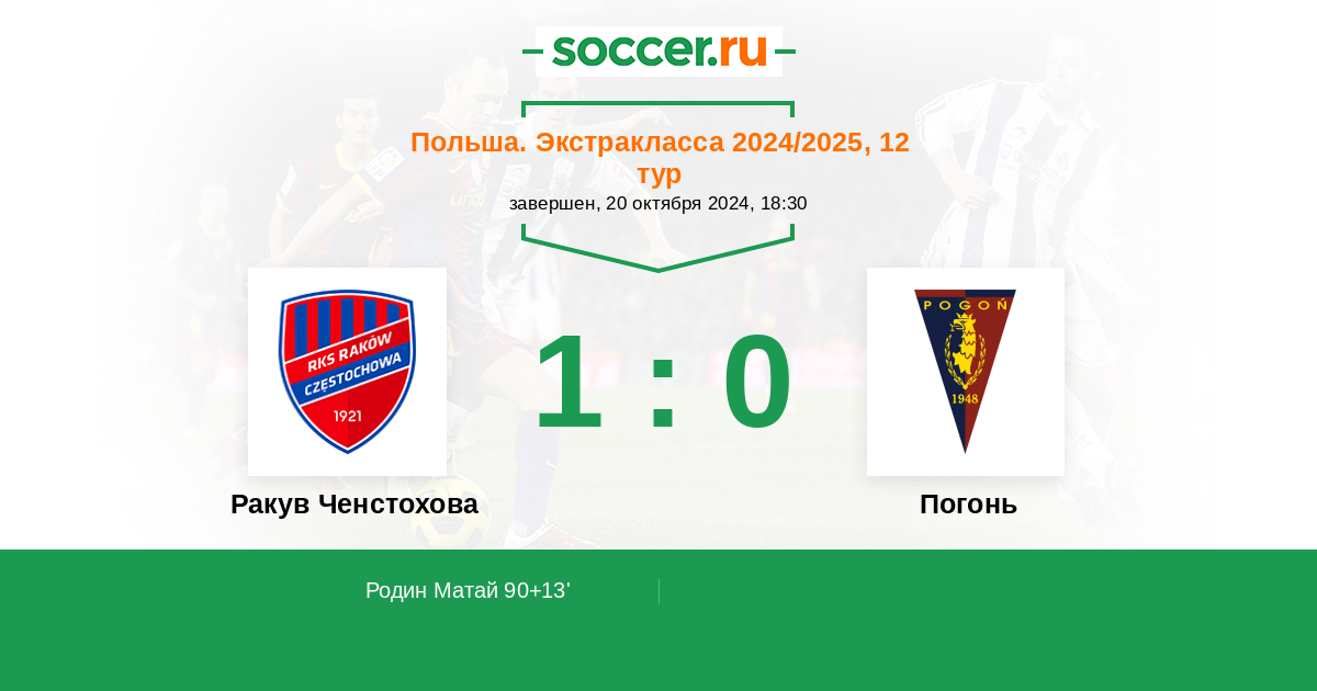 Протокол матча Ракув Ченстохова против Погонь