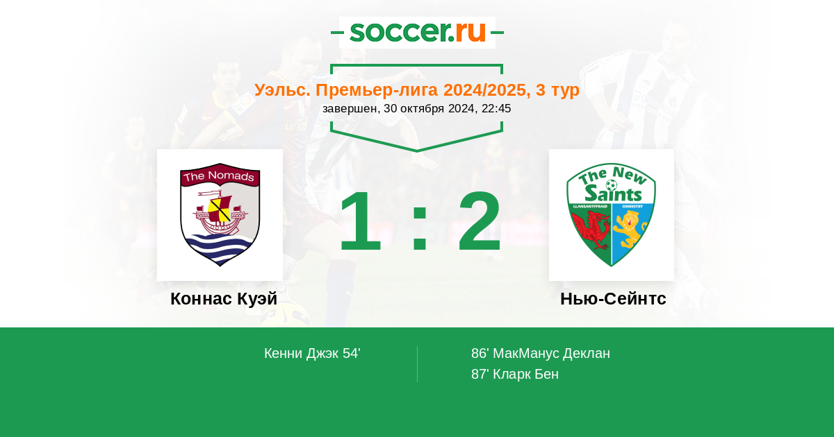 Протокол матча Коннас Куэй против Нью-Сейнтс