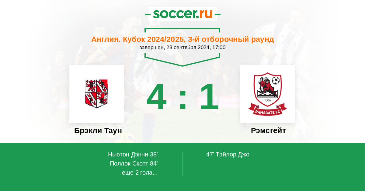 Протокол матча Брэкли Таун против Рэмсгейт