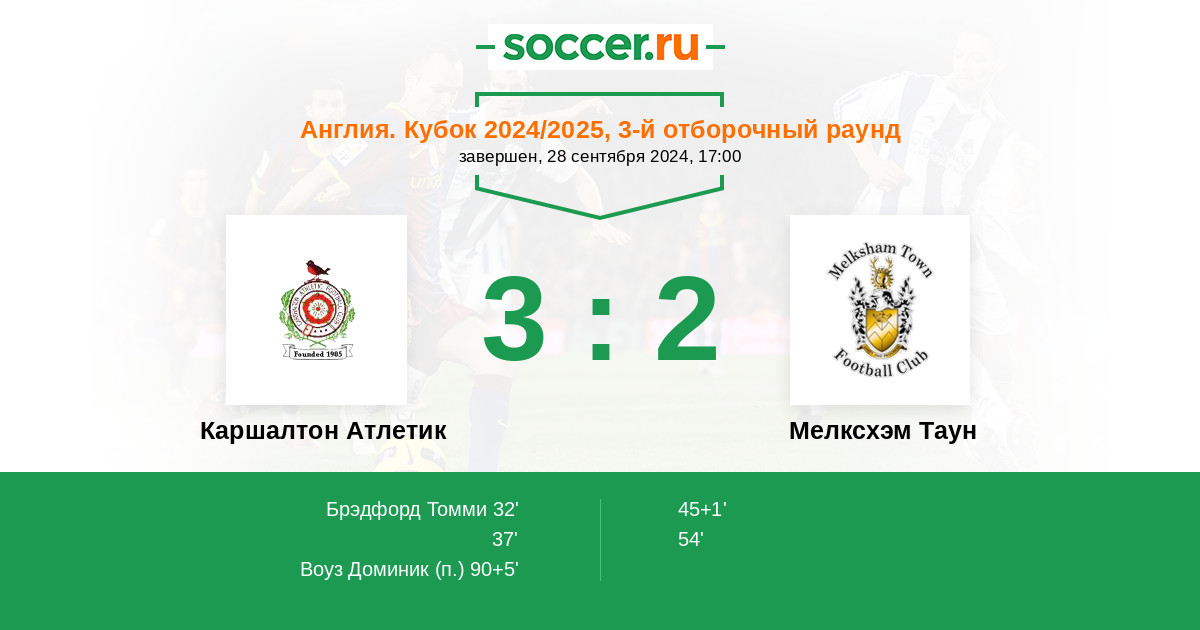 Протокол матча Каршалтон Атлетик против Мелксхэм Таун