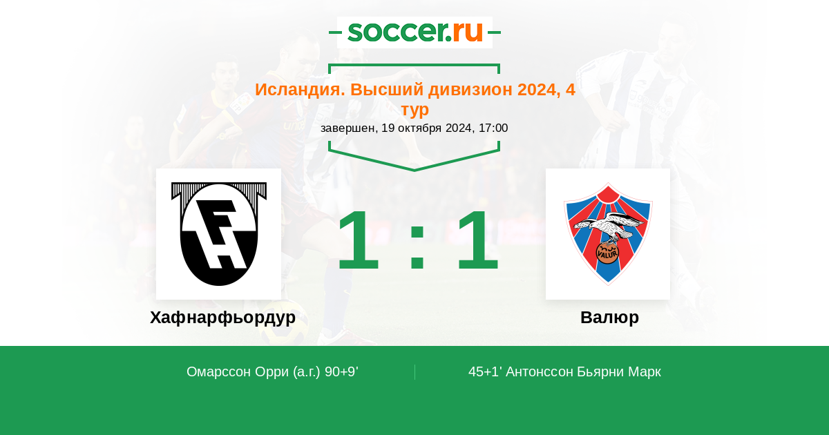 90+9' (1:1) Автогол Омарссон Орри (20)