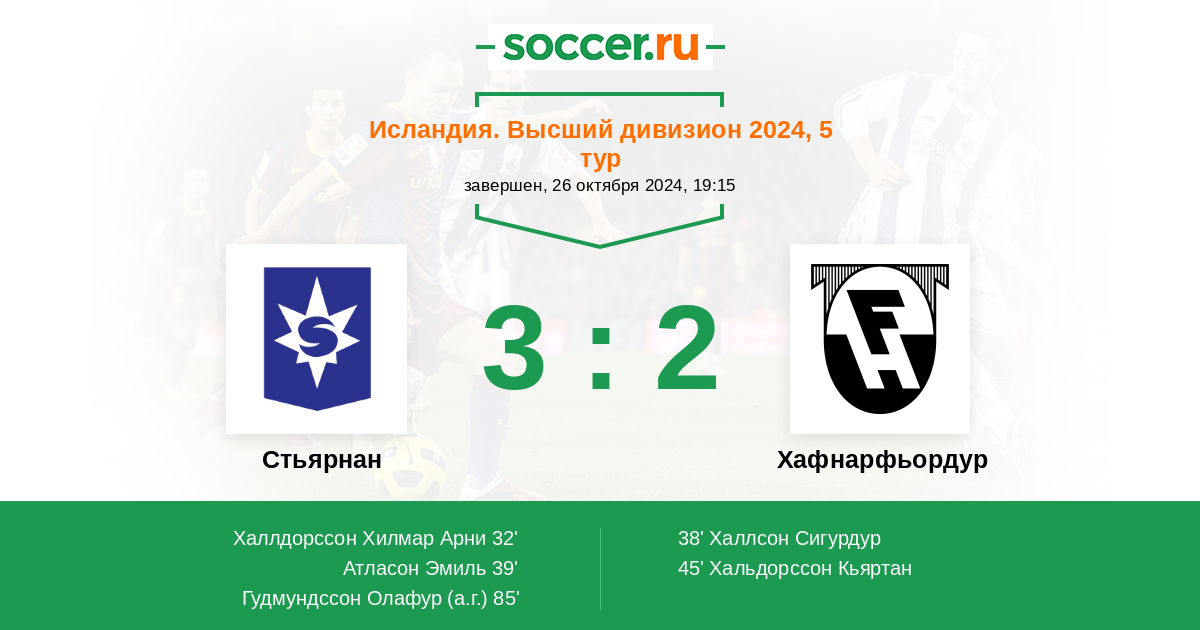 85' (3:2) Автогол Гудмундссон Олафур (4)