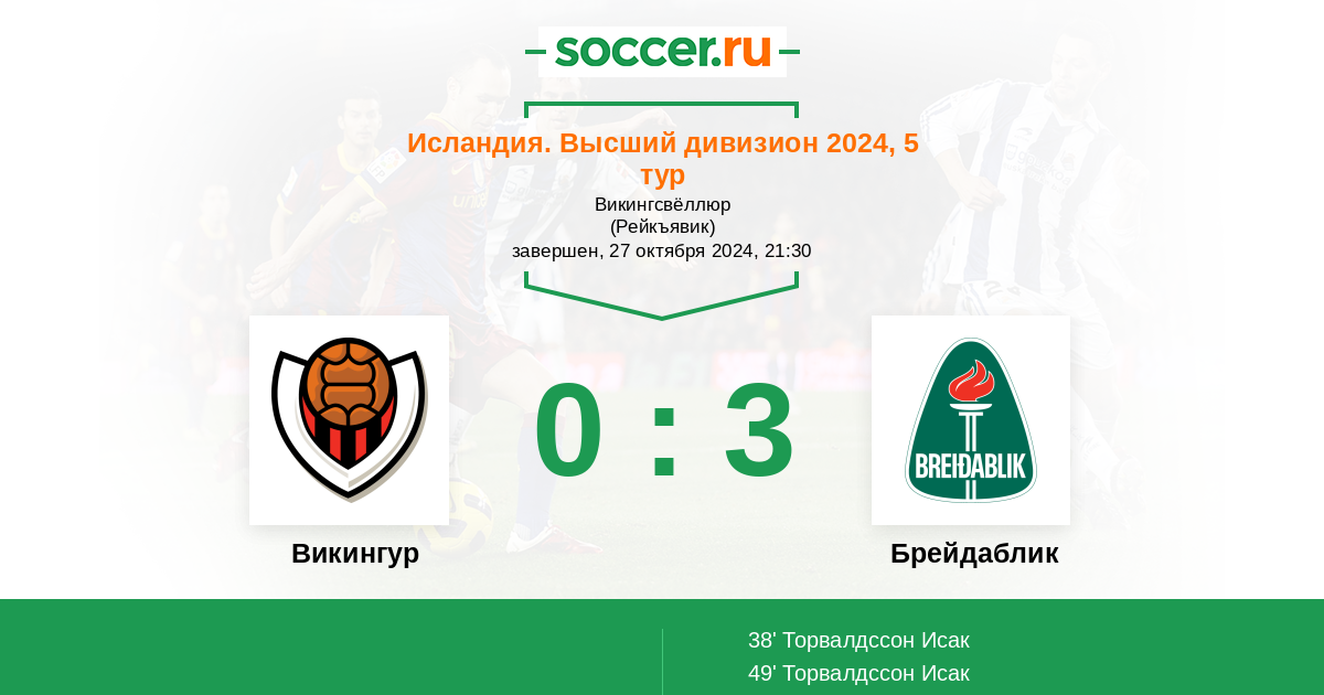 Протокол матча Викингур против Брейдаблик