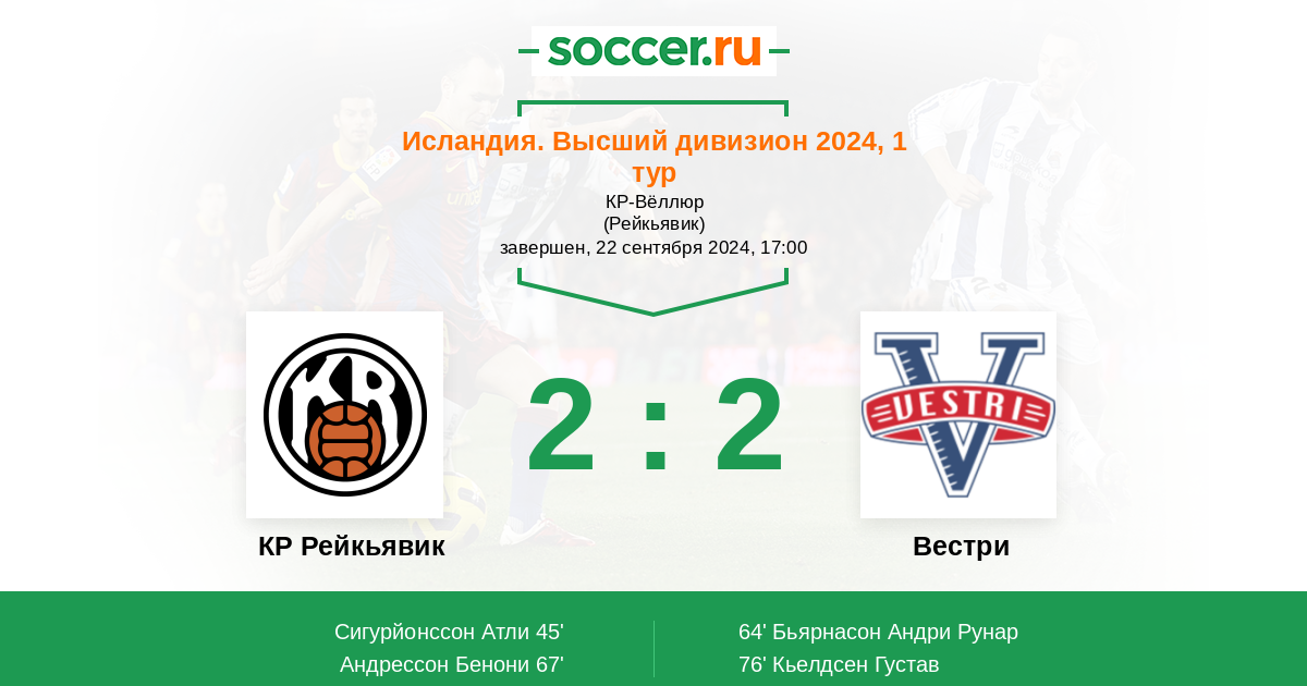 67' (2:1) Андрессон Бенони (9) (Сигурйонссон Атли (23))