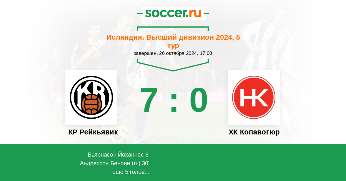 Протокол матча КР Рейкьявик против ХК Копавогюр