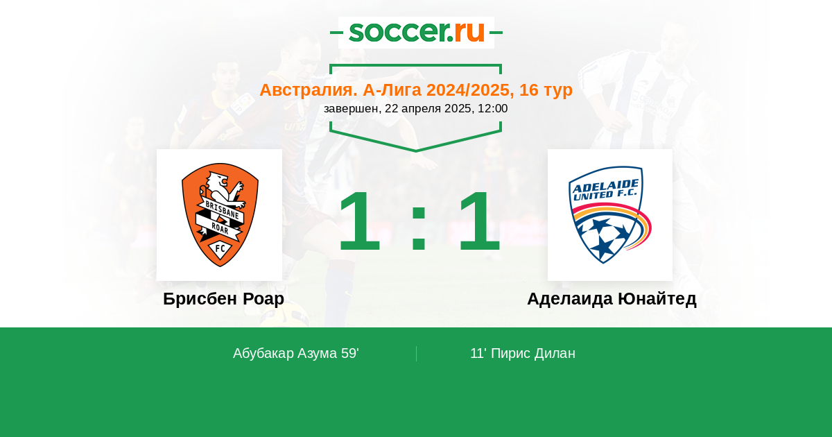 Протокол матча Брисбен Роар против Аделаида Юнайтед