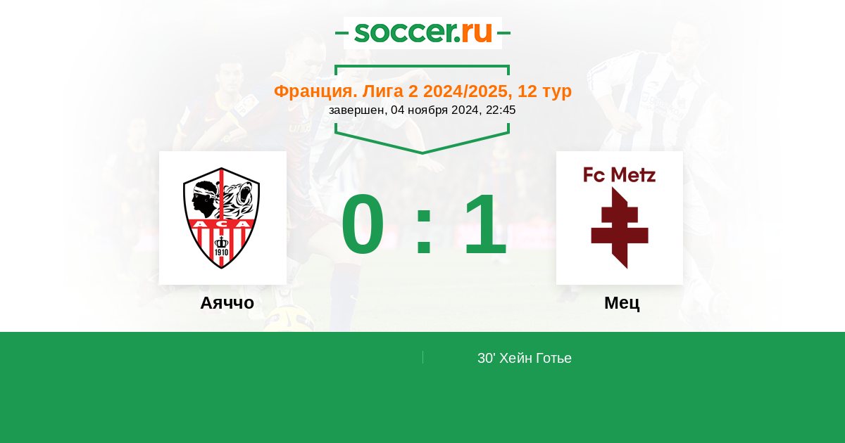 Протокол матча Аяччо против Мец