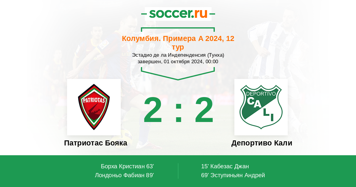Протокол матча Патриотас Бояка против Депортиво Кали
