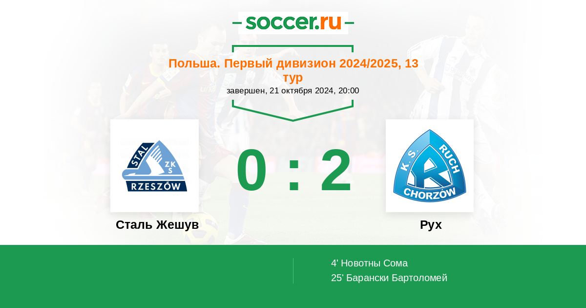 Протокол матча Сталь Жешув против Рух