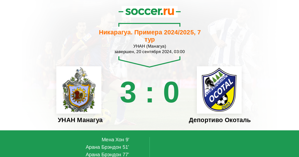 Протокол матча УНАН Манагуа против Депортиво Окоталь