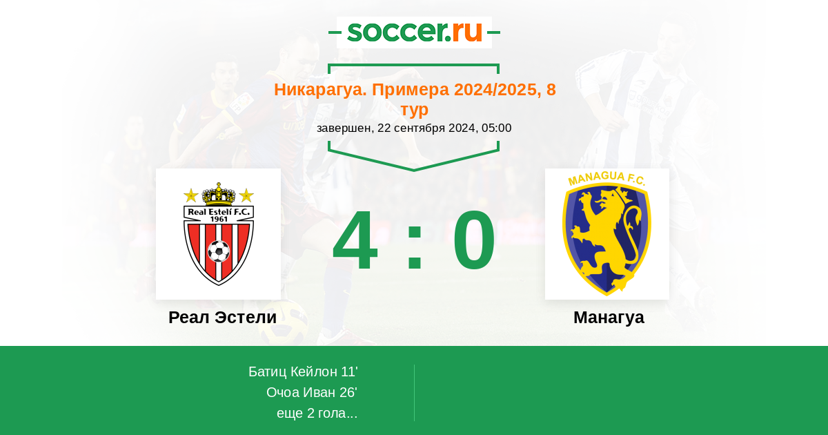 Протокол матча Реал Эстели против Манагуа