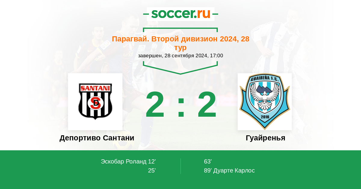 Протокол матча Депортиво Сантани против Гуайренья