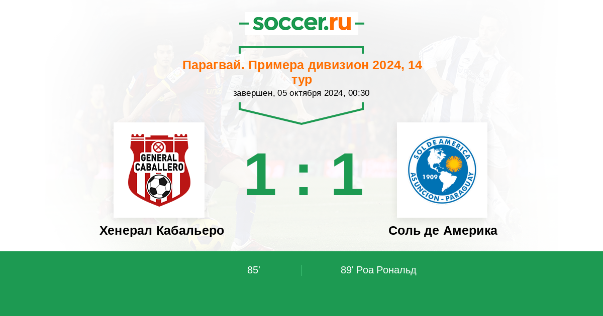 Протокол матча Хенерал Кабальеро против Соль де Америка