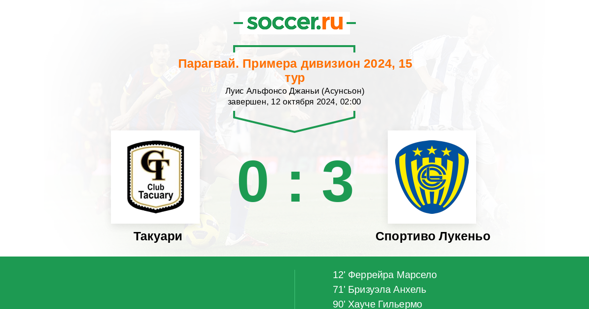 Протокол матча Такуари против Спортиво Лукеньо