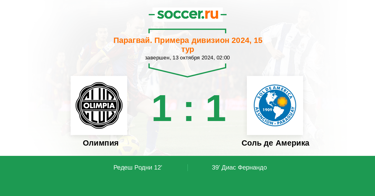 39' (1:1) Диас Фернандо (14) (Оруэ Дерлис (18))