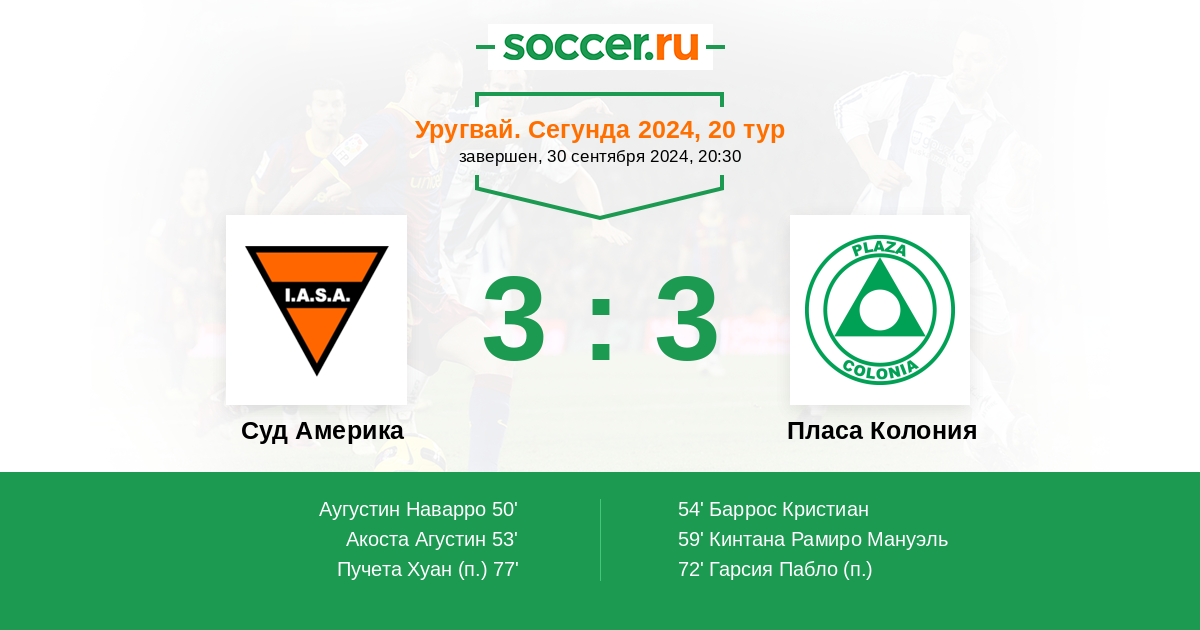 Протокол матча Суд Америка против Пласа Колония