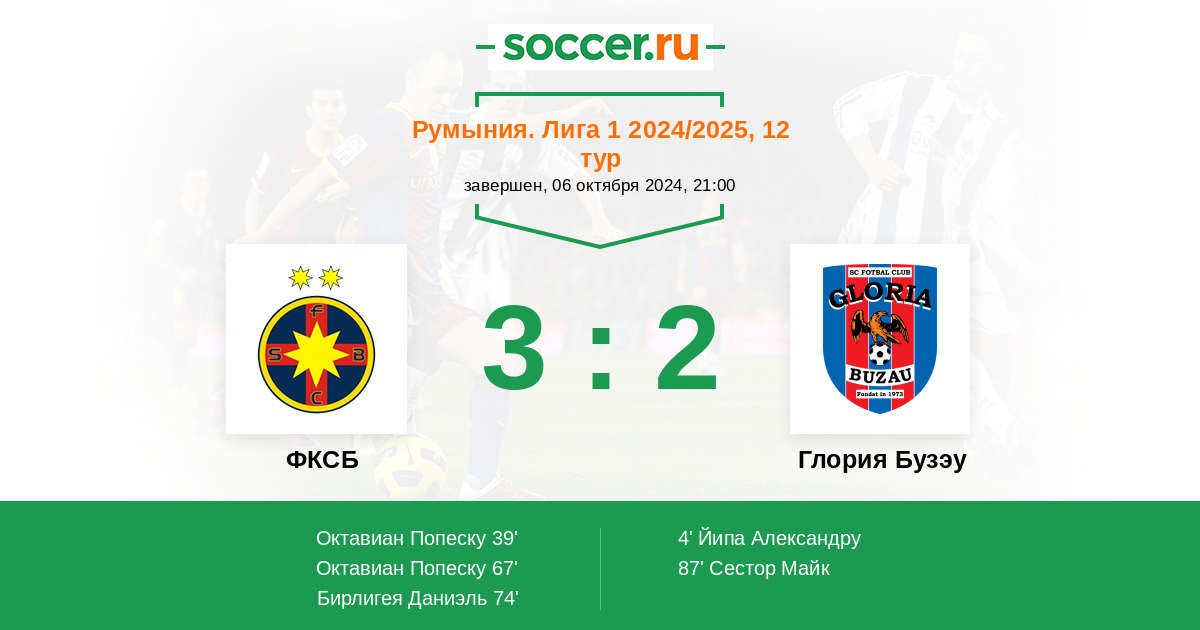 74' (3:1) Бирлигея Даниэль (9) (Бэлуцэ Александру (25))