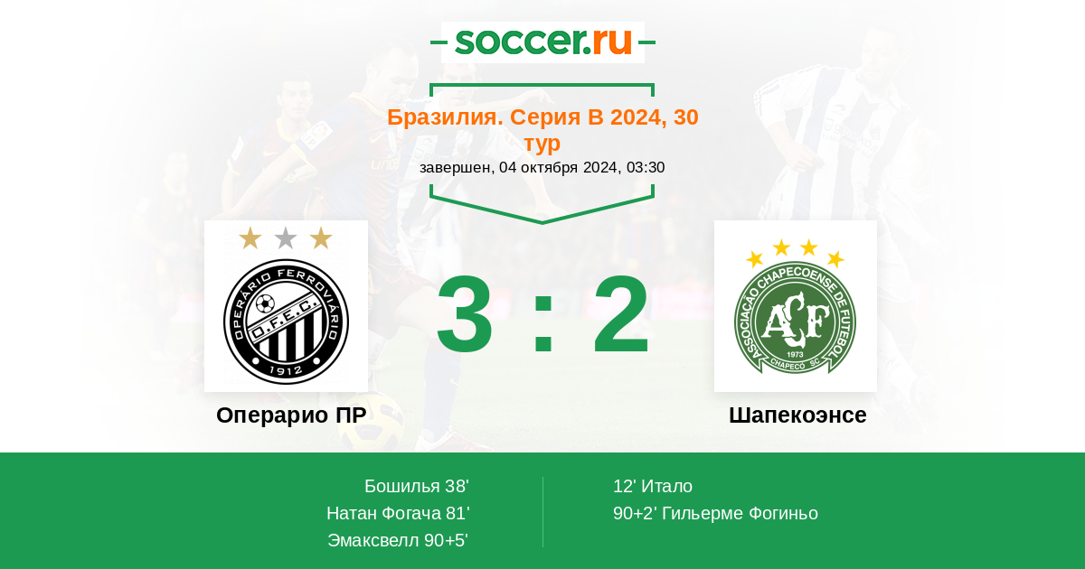 Протокол матча Операрио ПР против Шапекоэнсе
