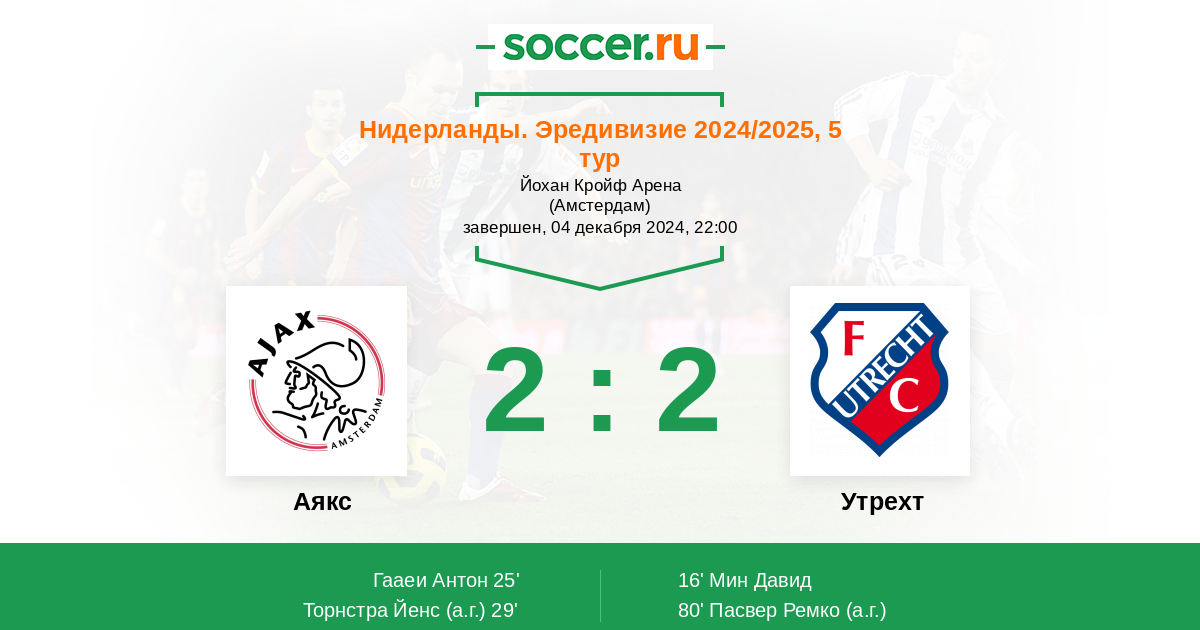 Протокол матча Аякс против Утрехт
