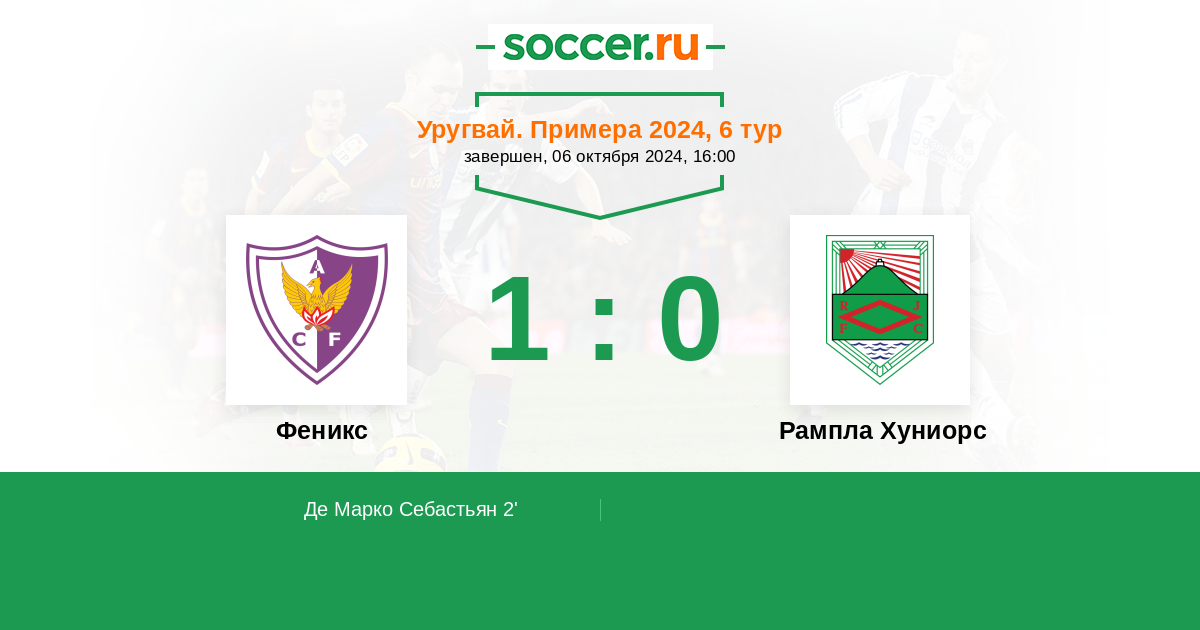 Протокол матча Феникс против Рампла Хуниорс