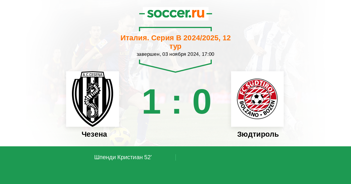 Протокол матча Чезена против Зюдтироль