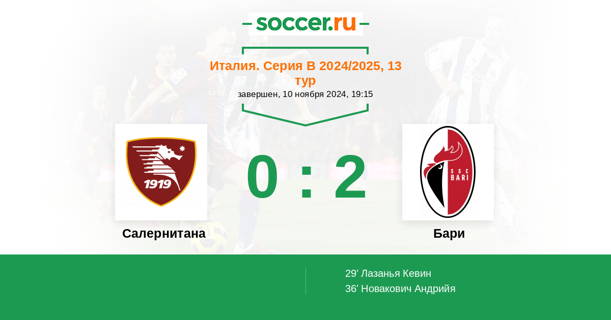Протокол матча Салернитана против Бари