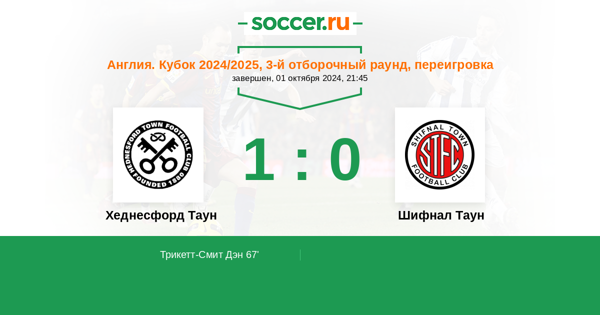 Протокол матча Хеднесфорд Таун против Шифнал Таун