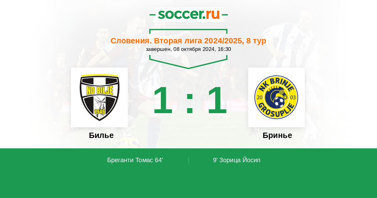 Протокол матча Билье против Бринье