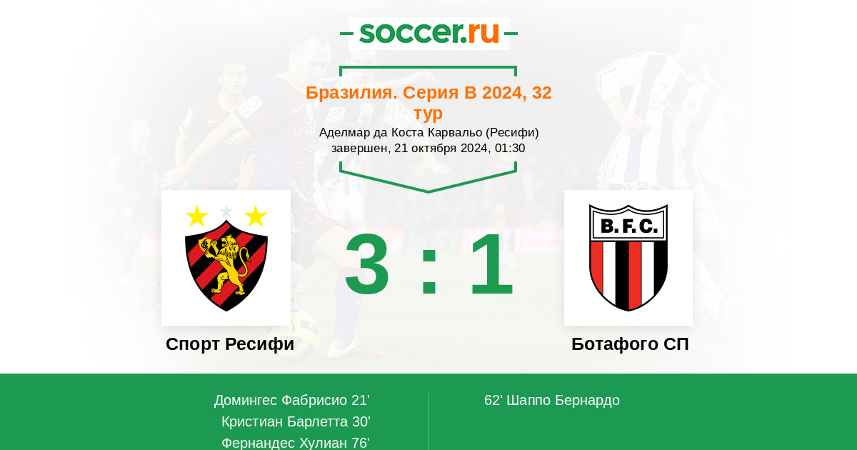 Протокол матча Спорт Ресифи против Ботафого СП