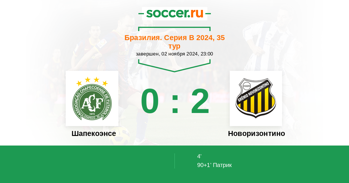 Протокол матча Шапекоэнсе против Новоризонтино