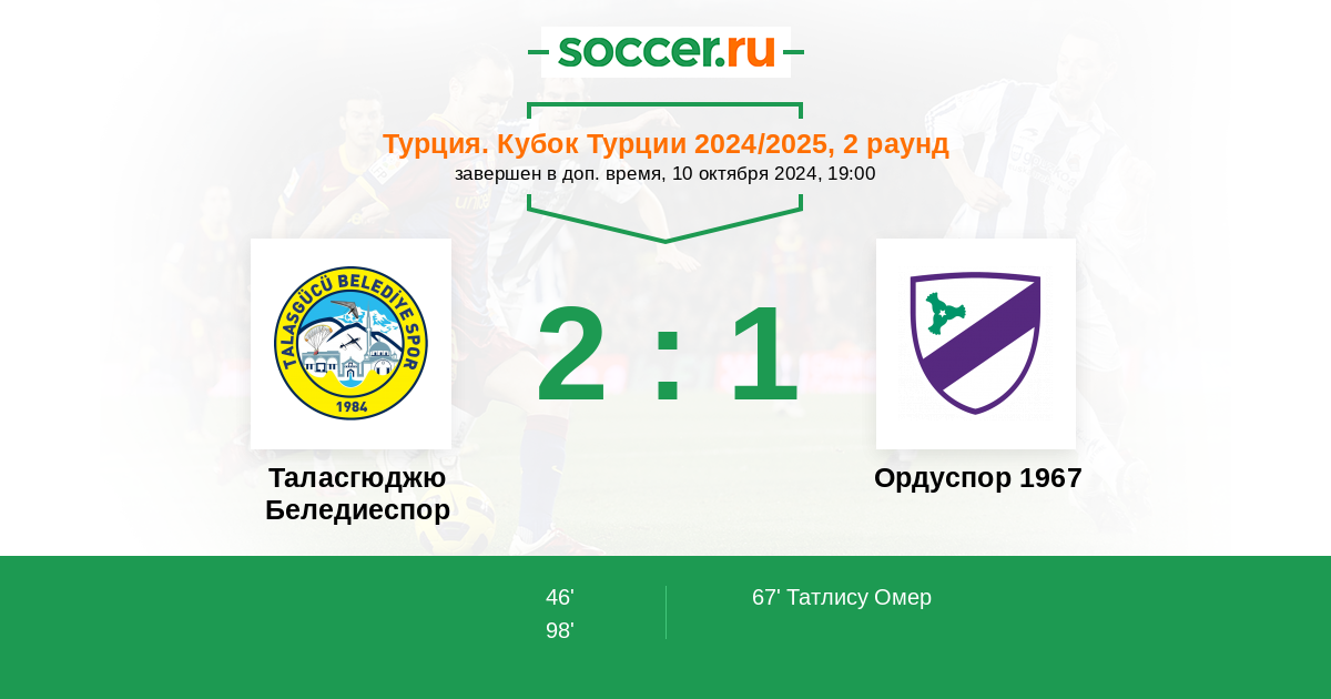 Протокол матча Таласгюджю Беледиеспор против Ордуспор 1967