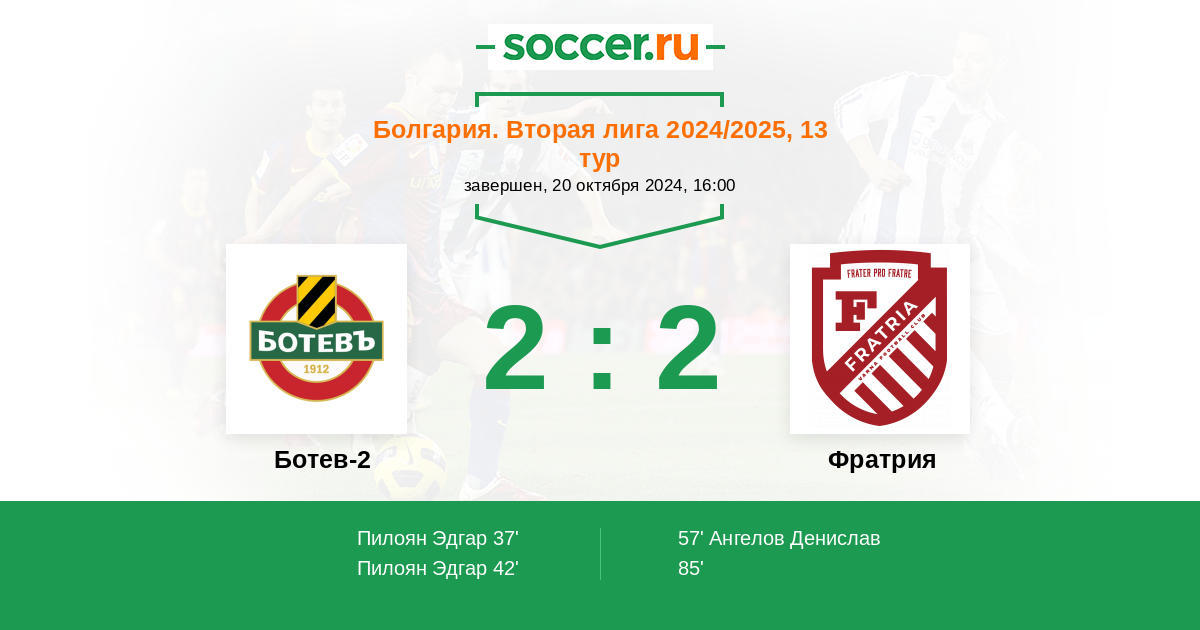 Протокол матча Ботев-2 против Фратрия