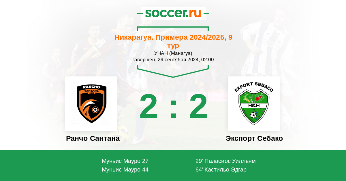 Протокол матча Ранчо Сантана против Экспорт Себако