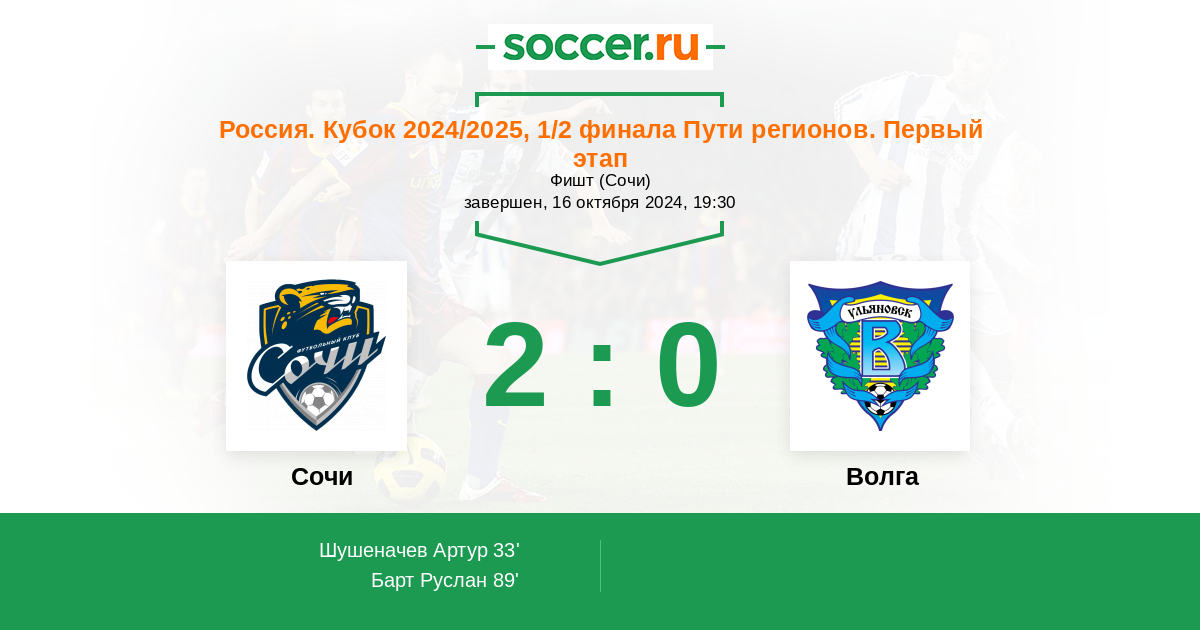 Протокол матча Сочи против Волга