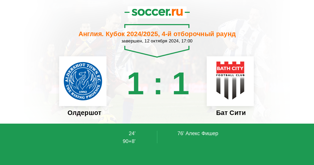 Протокол матча Олдершот против Бат Сити