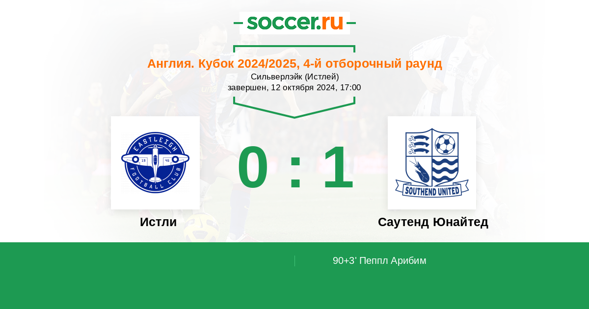 Протокол матча Истли против Саутенд Юнайтед